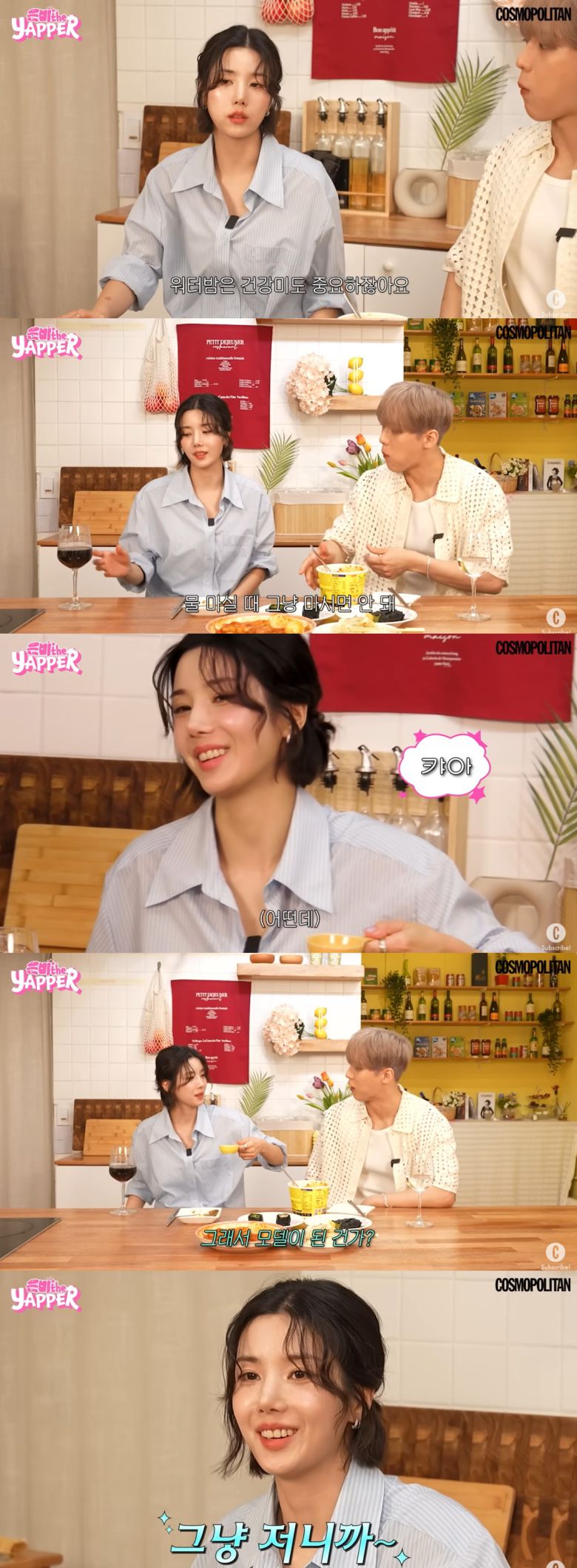 이어 권은비는 "워터밤은 건강미도 중요하다. 중점적으로 신경쓰는 부위가 있냐"고 물었고, 이민혁은 "난 등이다. 모니터하며 어디가 약점인지 보게 되더라. 대흉근 이야기가 많았다. 좀 타고난 거 같다"며 운동광 면모를 보였다.