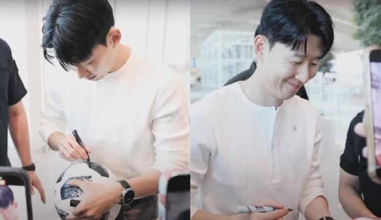 손흥민은 지난 10일 오전 인천국제공항을 통해 영국 런던으로 출국했다. 이날 SNS에는 손흥민이 팬들에게 사인을 해주고 사진도 찍어주는 모습이 담긴 게시글이 여러 개 올라왔다.