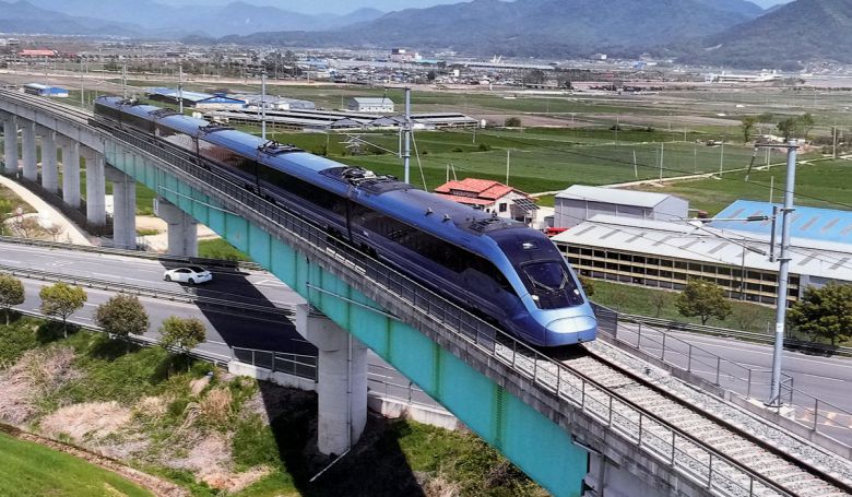 전남 남해선 ‘목포~보성’ 구간의 강진군·읍 강진고가를 종합 시운행하고 있는 KTX 이음 EUM. 전남도 제공 |