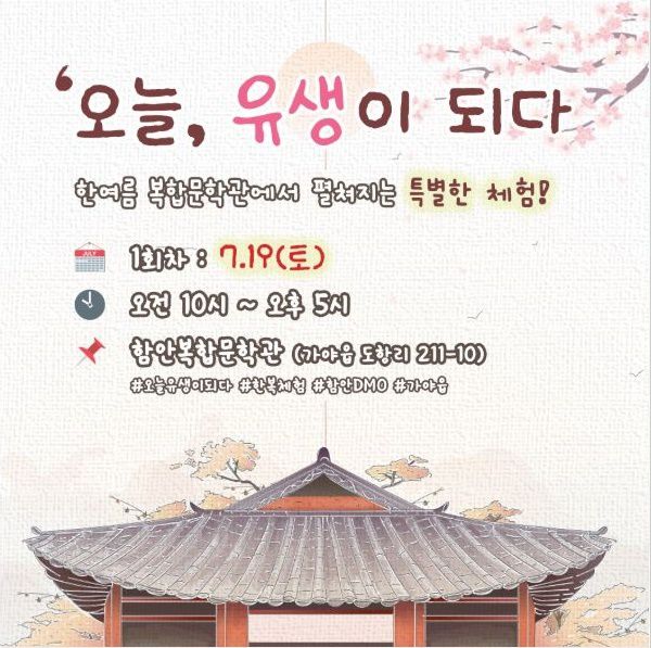 [함안=뉴스핌] 남경문 기자 = 경남 함안군은 오는 19일과 8월9일 두차례에 걸쳐 함안복문합문학관에서 지역관광추진조직 함안DMO와 함께 전통 체험형 문화 축제 '오늘, 유생이 되다'를 개최한다고 11일 밝혔다.
