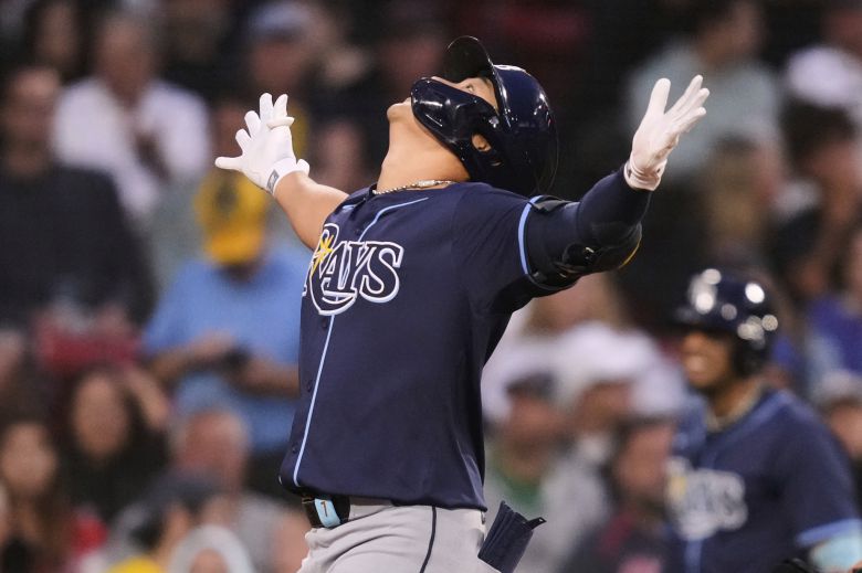 김하성(30·탬파베이 레이스)이 ‘그린 몬스터’를 넘기는 시즌 1호 홈런을 쏘아 올렸다.