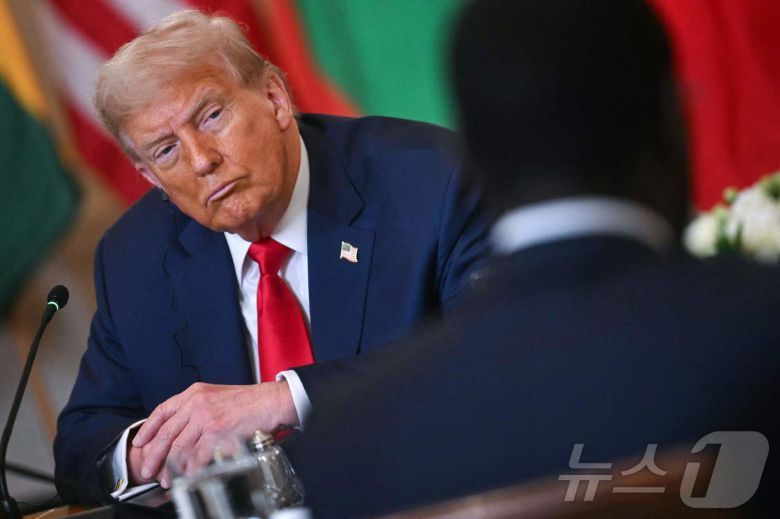 도널드 트럼프 미국 대통령이 9일(현지시간) 워싱턴DC 백악관 국빈 식당에서 세네갈, 라이베리아, 기니비사우, 모리타니, 가봉 등 아프리카 5개국 정상과의 오찬 회담에서 세네갈 정상의 발언을 듣고 있다. 2025.07.09 ⓒ AFP=뉴스1 ⓒ News1 류정민 특파원 |