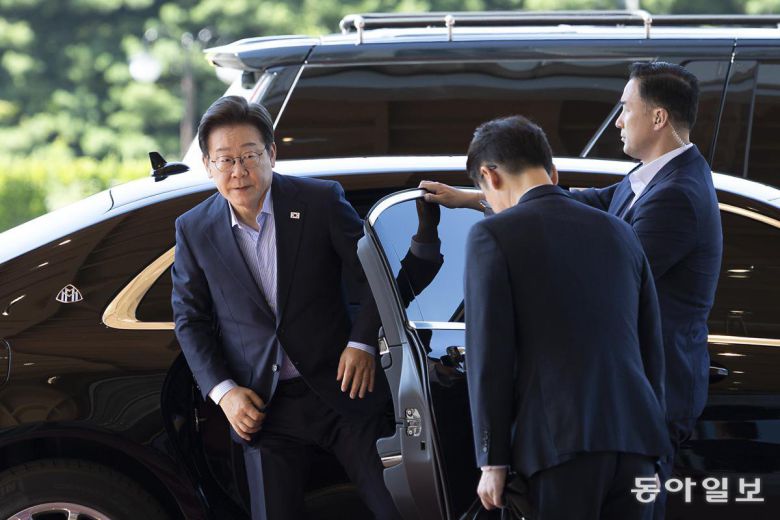 이재명 대통령이 11일 오전 서울 용산 대통령실로 출근을 하고 있다. 송은석 기자 silverstone@donga.com