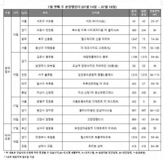 한편, 서울에서는 서초구 ‘서초 PH1514’(40가구), 용산구 ‘더 파크사이드 스위트’(775실) 등이 청약을 진행한다.