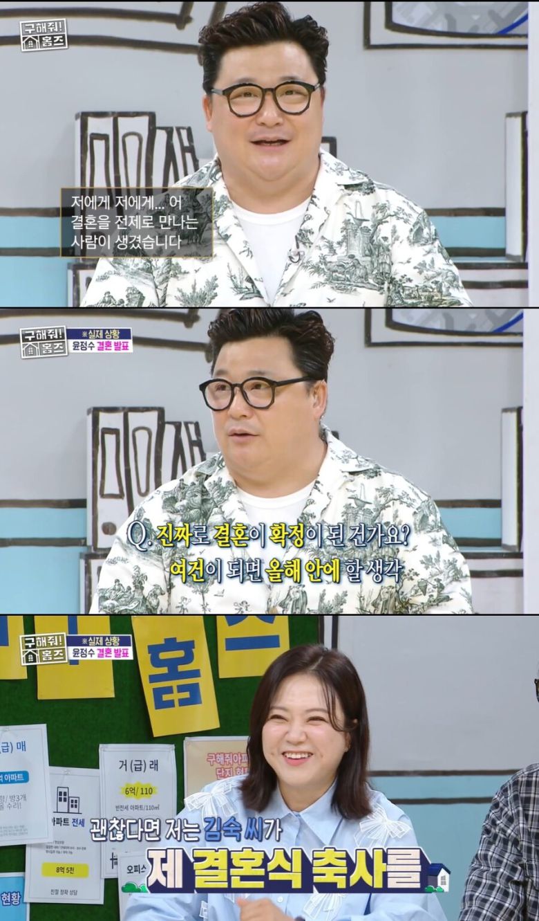 10일 방송된 MBC ‘구해줘! 홈즈’(연출 정다히 김문섭 소인지 김완철 허자윤, 이하 ‘홈즈’)에서는 윤정수가 게스트로 출연, 당당히 결혼을 발표해 시선을 집중시켰다.
