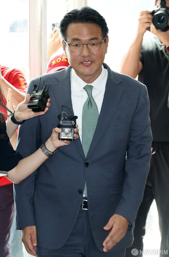 [서울=뉴스핌] 정일구 기자 = 김태효 전 국가안보실 1차장이 11일 오후 서울 서초구 서초한샘빌딩에 마련된 순직해병 특검 사무실로 소환 조사를 받기 위해 출석하고 있다. 2025.07.11 mironj19@newspim.com