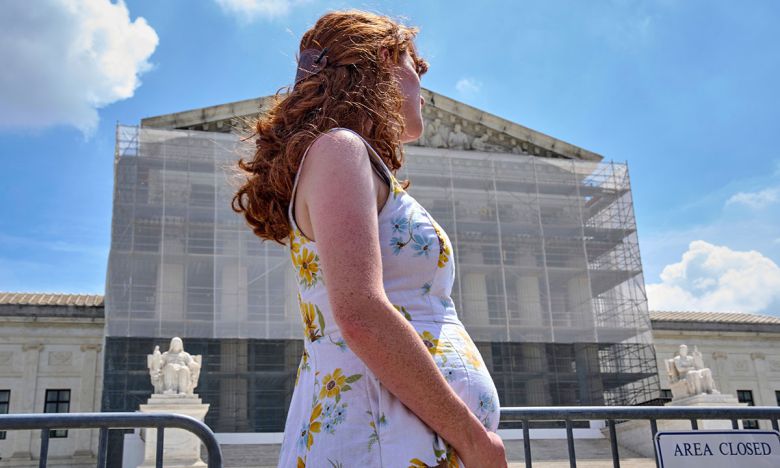 지난 5월 미국 대법원 앞을 지나는 임신부. AP연합뉴스