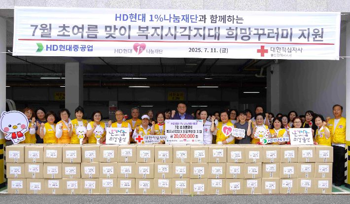 HD현대중공업과 HD현대1%나눔재단은 11일 대한적십자사 울산광역지사에서 '희망꾸러미 지원 전달식'을 열었다.