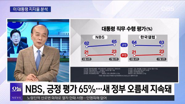 네. 그런데도 그렇게 수많은 질타를 받는데도 민주당에서는 아주 귀를 꽉 막고 있는지 이런 인사가 벌어지고 지난번까지는 이제 김민석 총리를 주로 여기서 많이 제가 비판했는데. 그러고도 지금 이 정권의 지지도가 63%, 65%란 말이에요, 두 여론조사가. 문제는 잘못하고 있다, 이건 절반도 안 되는 23%입니다.