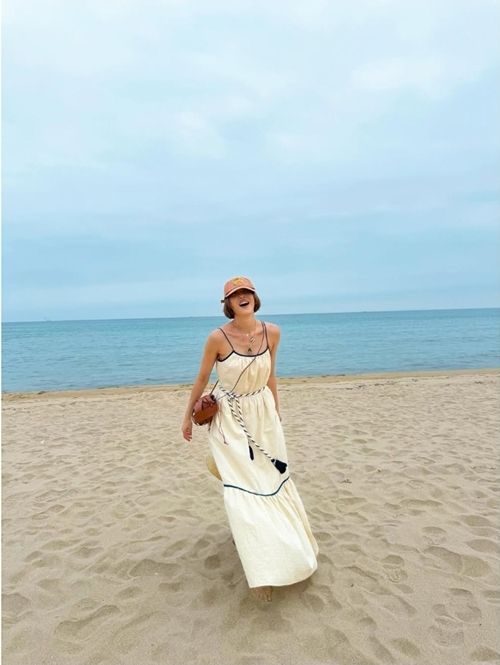흐린 날 바다를 찾은 최은경은 수영복과 선드레스보다 맨발로 먼저 계절을 걸었으며, 행복한 여름의 풍경을 알렸다.