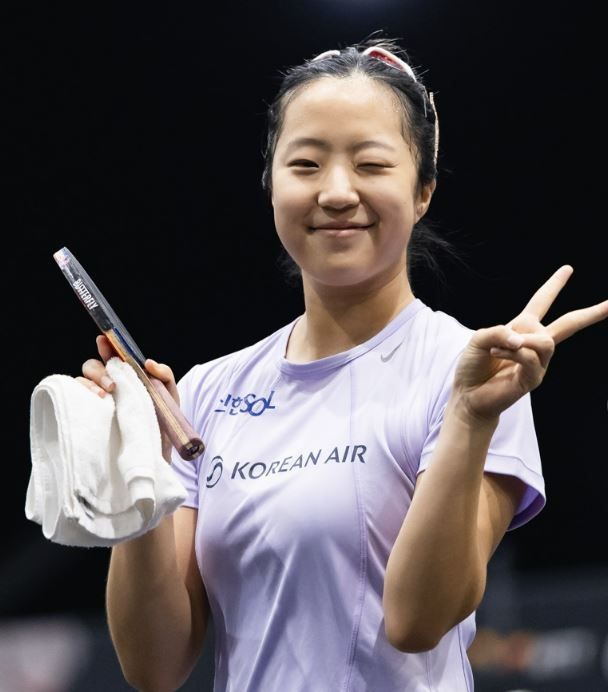 11일(한국시간) 미국 라스베이거스에서 열린 월드테이블테니스(WTT) 미국 스매시에 참가한 신유빈. WTT 소셜미디어 캡처