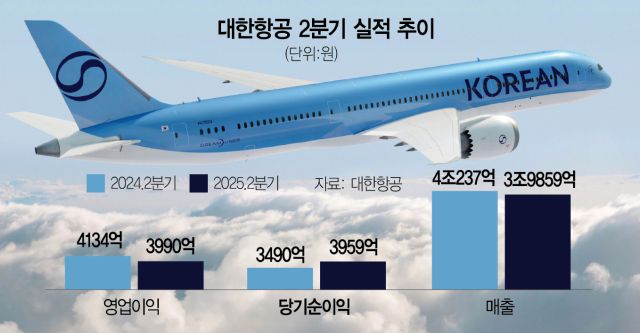 대한항공이 항공업 비수기인 2분기에 도널드 트럼프 행정부의 관세 폭탄까지 겹치는 상황에서도 오히려 순이익이 늘어난 실적을 발표했다. 전 세계의 교역 위축으로 화물과 여객 매출에 영향을 받았지만 원·달러 환율과 국제유가가 실적에 유리하게 작용하면서 순이익이 개선됐다.