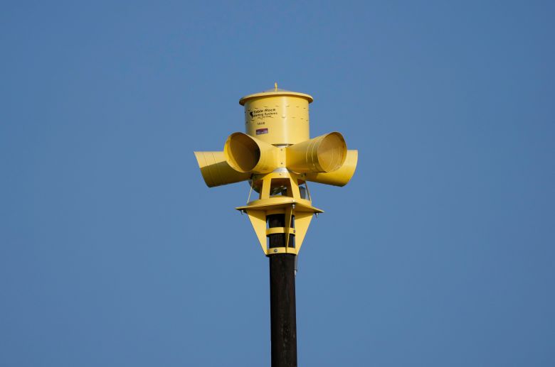 주민 모두가 안전하게 대피할 수 있었던 컴포트 마을 소방서 위 사이렌 스피커. /AP 연합뉴스 |