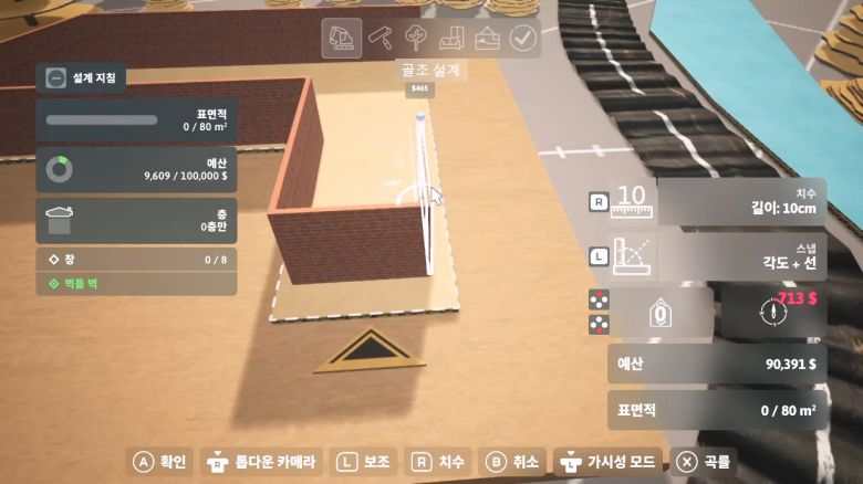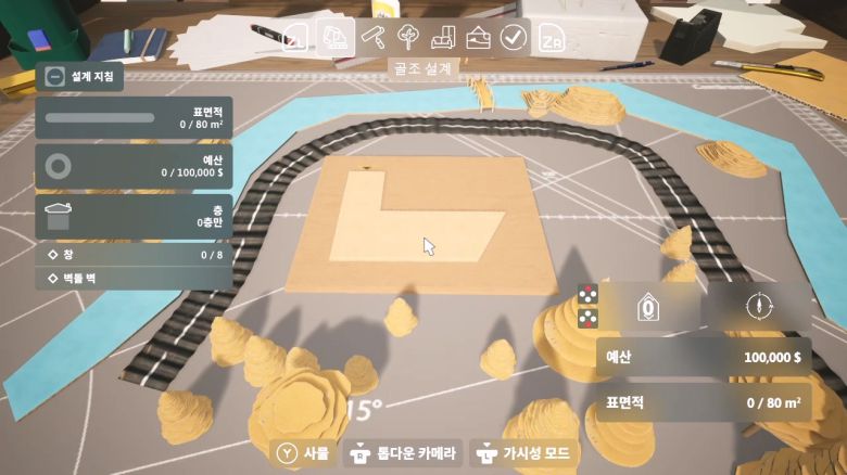 ■제1차 설계 확정: 고객의 니즈와 지형, 그리고 제한된 예산에 자신의 창의력을 더해라. 기발한 아이디어를 통해 벽, 방, 지붕, 문, 창, 발코니 등을 모델링하라.