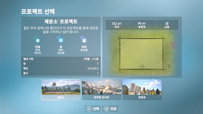 ■건설: 남은 예산에 맞춰 하청 업체를 선정하고, 현장을 감독하라. 모든 건설이 계획대로 진행될 거라는 보장은 없다. 현장 감독이자 총책임자로서 예상치 못한 상황에 대응하라.