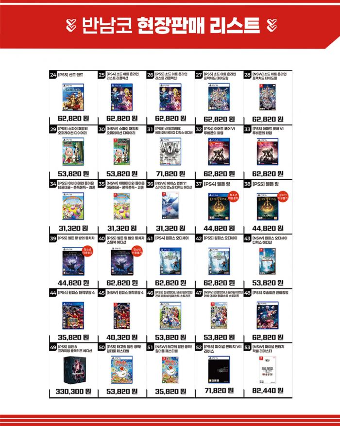 이외에도 반다이남코 엔터테인먼트의 타이틀과 MD의 현장 판매, 소정의 기념품을 증정하는 이벤트 등을 진행한다. 소장 욕구를 자극하는 스페셜 경품 등 다양한 콘텐츠와 즐길 거리가 여러분을 기다린다.