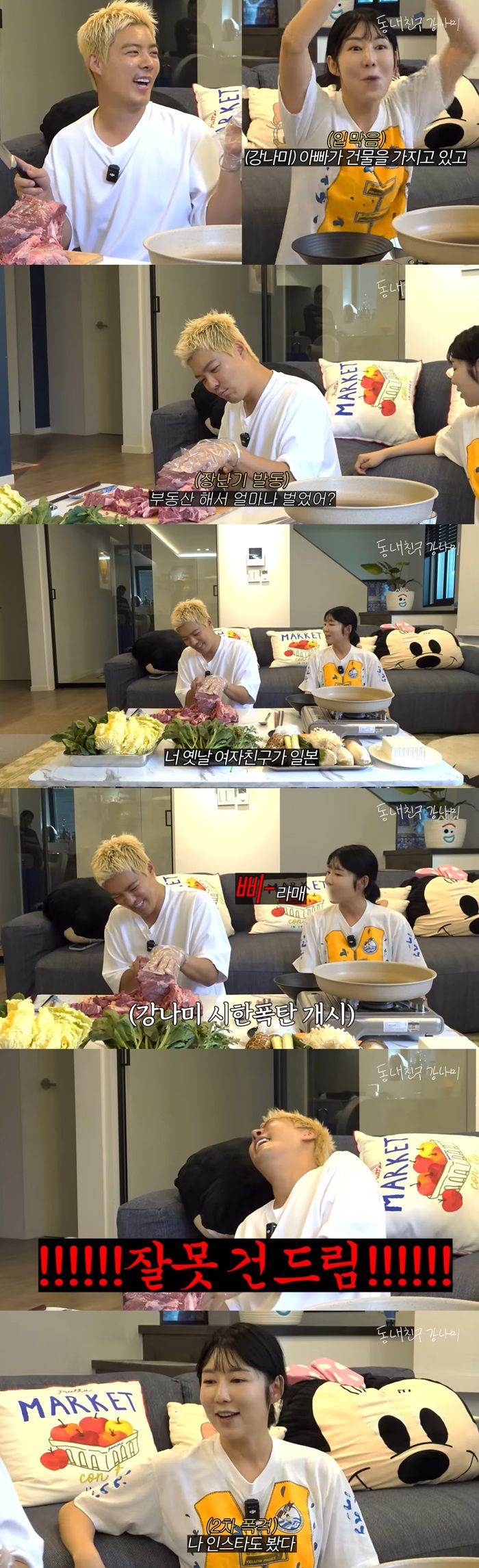 이날 강남은 게스트 사유리를 집으로 초대해 다양한 대화를 나눴다. 여러 주제의 대화를 하던 중 사유리는 고기를 먹는 방식을 이야기하다 "고급식당에 가면"이라고 설명했고, 강남은 "역시 부자라서. 재벌이다. 부동산 해서 얼마 벌었나"라며 사유리를 당황케 했다.