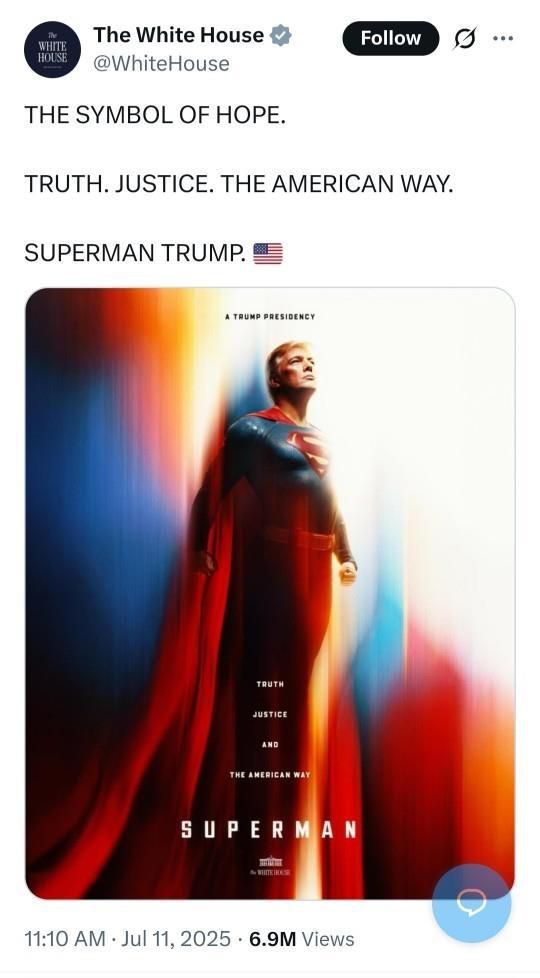 트럼프 대통령의 '슈퍼맨' 이미지. 사진=백악관 X |