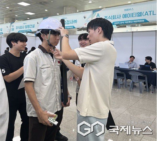 (청주=국제뉴스) 이재기 기자 = 안전보건공단 충북지역본부(본부장 이규득)는 2025년 7월 11일 2025년 직업계고 취업박람회에서 직업계고 학생들을 대상으로 질적인 재해예방 역량강화를 위해 산업안전 VR 콘텐츠와 보호구 안전체험 부스 운영 및 핵심역량 나눔활동을 전개했다.