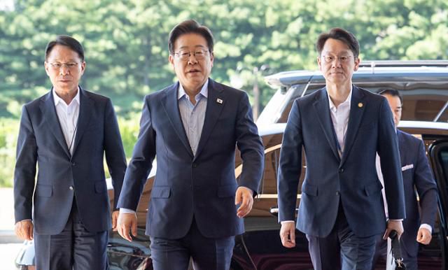 이재명 대통령이 11일 오전 서울 용산 대통령실로 출근을 하고 있다. 왕태석 선임기자