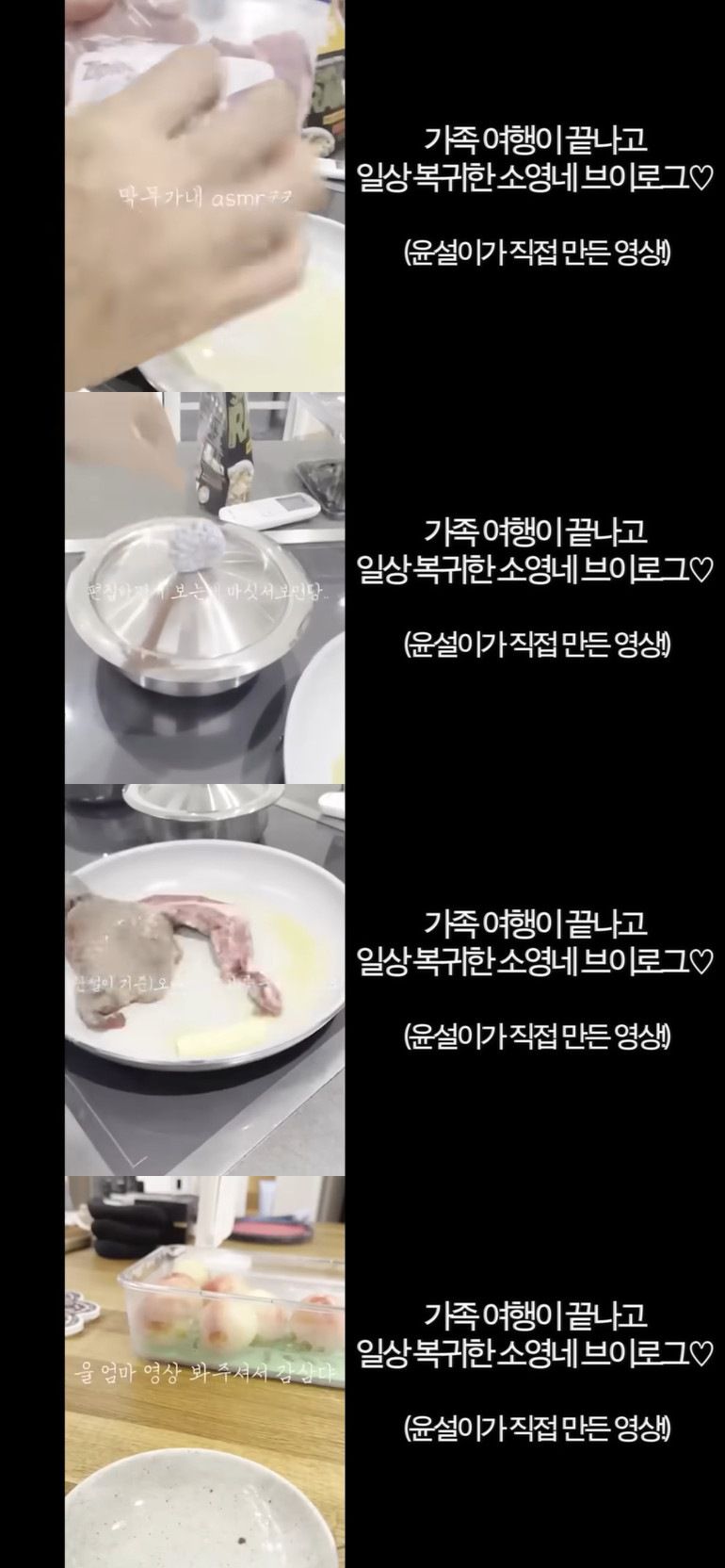 여행이 끝난 후 일상으로 복귀한 고소영 가족은 함께 식사 준비를 했으며, 윤설은 뜬금 ASMR과 오빠 준혁이 고기를 굽는 모습을 공개하기도.
