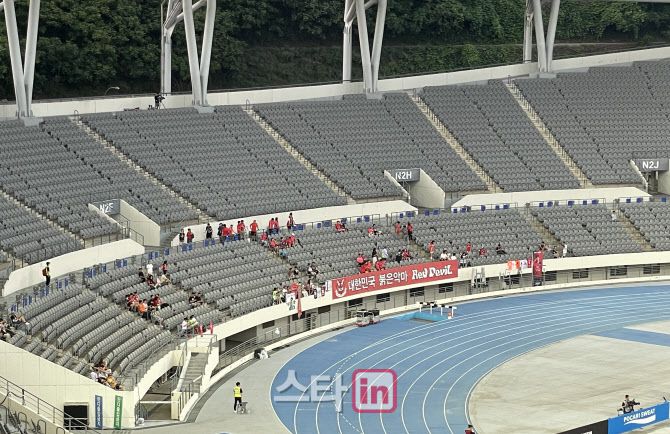 지난해 10월 같은 장소에서 열린 2026 국제축구연맹(FIFA) 북중미 월드컵 아시아 지역 3차 예선 이라크전의 3만 5198명과 큰 차이다.