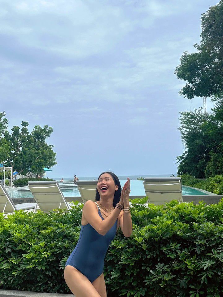 사진 속 미미는 네이비 수영복을 입고 구릿빛 피부에 골드 액세서리를 레이어드해 세련된 포인트를 더했다. 물안경을 머리에 얹은 스포티한 연출이 활동적인 에너지를 극대화했다.