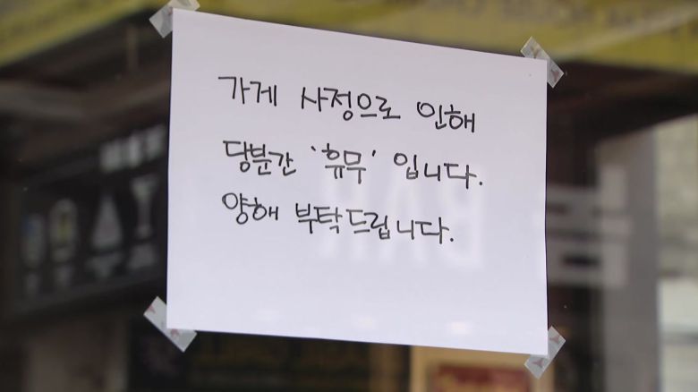 굳게 닫힌 문에는 가게 사정으로 당분간 쉰다는 문구가 붙어 있습니다.