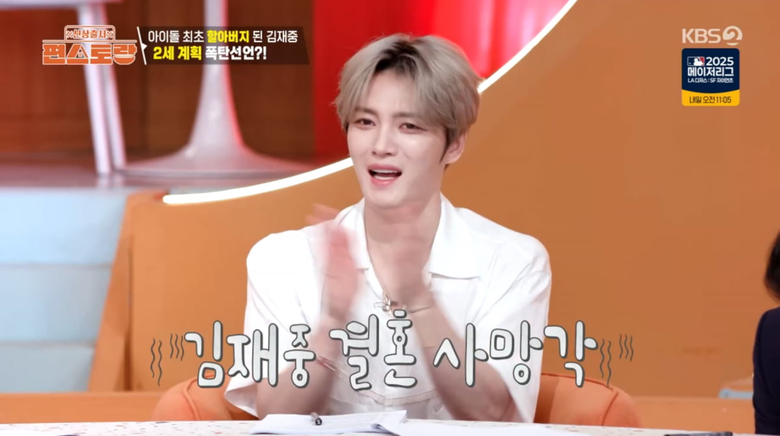 김재중은 "너는 아기 몇 명 낳을 거냐"는 질문에 "가장 이상적인 건, 다섯은 낳아야지. 딸 셋에 아들 둘 좋은 것 같다"고 밝혔다.