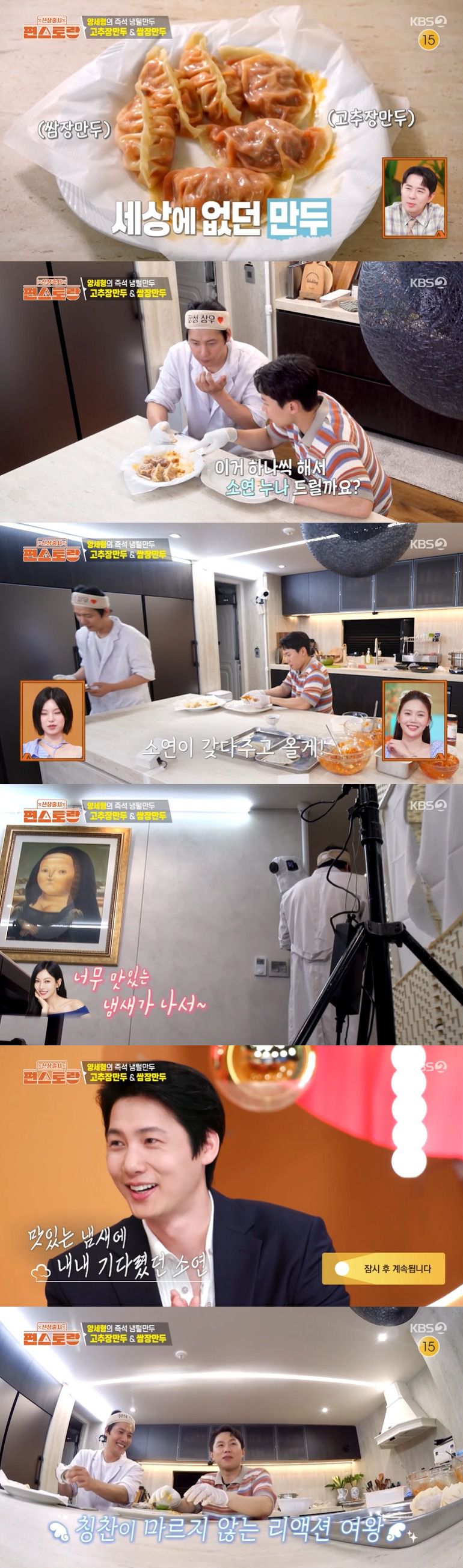 이에 이상우는 "갖다주고 올게"라며 만두를 챙겨 자리에서 일어났고, 김소연은 "여기 대기하고 있다. 너무 맛있는 냄새가 나서"라며 너스레를 떨었다.