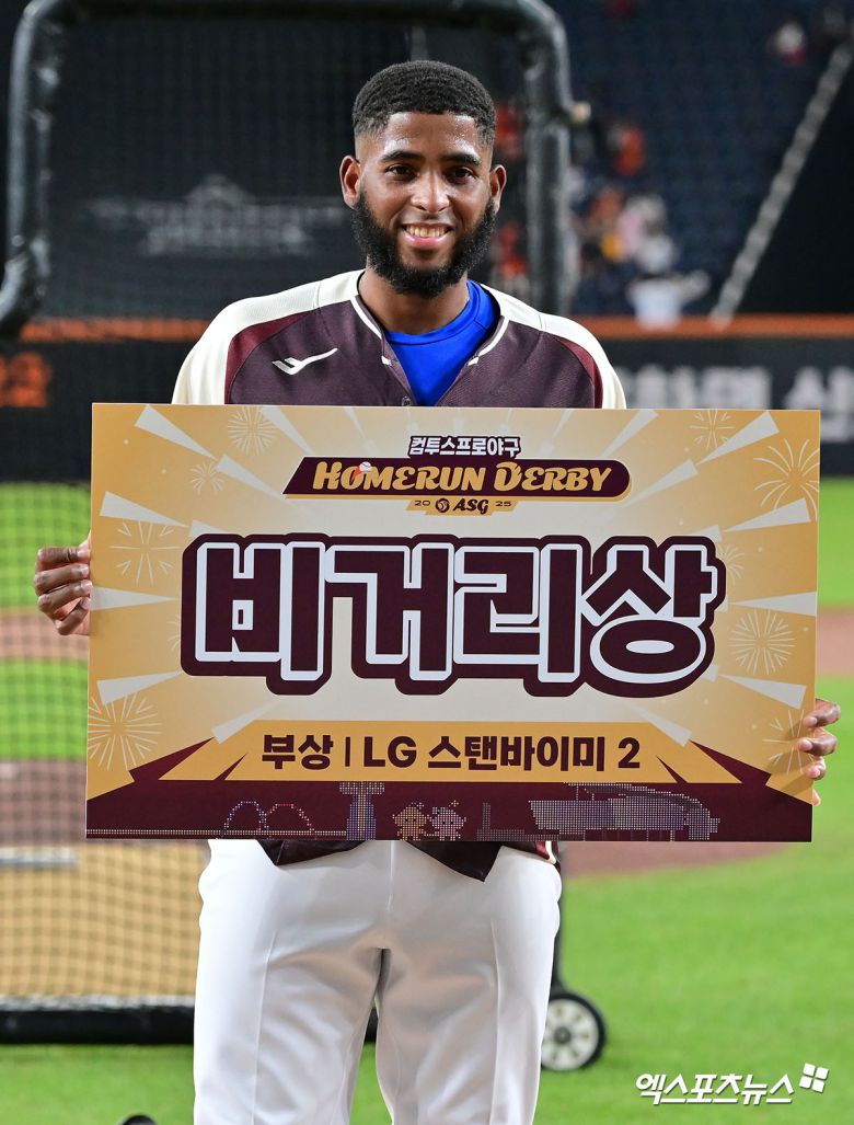 (엑스포츠뉴스 대전, 김한준 기자) 11일 오후 대전한화생명볼파크에서 열린 '2025 신한 SOL Bank KBO 올스타전 홈런레이스, 삼성 디아즈가 홈런레이스 우승을 차지했다.