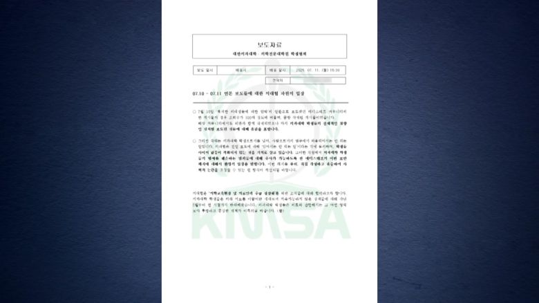 의대생 단체인 대한의과대학·의학전문대학원 학생협회는 최근 온라인 커뮤니티 메디스태프에 '복귀 의대생 등에 대한 보복 예고 글'이 게시된 것에 대해, 의대생을 넘어 사람으로서 허용해서는 안되는 일이라고 비판했습니다.