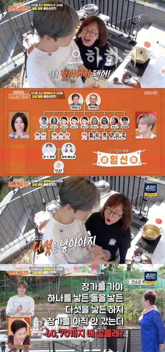 김재중 둘째 누나는 "너 할아버지 됐다"고 했다. 둘째 누나 아들이 결혼해 아이가 생겼다고 얘기한 것이다. 김재중은 9남매다.