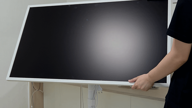 무빙스탠드는 TV를 가로·세로로 전환할 수 있는 '피벗' 기능과 +30도에서 -20도로 화면 각도를 조절할 수 있는 '틸트' 기능, 105㎝~126㎝로 상하 높낮이를 조절할 수 있는 '엘리베이션' 기능을 지원한다. 세 가지 기능 모두 큰 힘을 들이지 않아도 된다. 바퀴의 이동도 덜컥거림 없이 부드러웠다. 옮길 때 소음이 나지 않아 층간 소음 걱정은 전혀 없었다. 스탠드를 포함한 제품 무게는 8.9㎏으로 가볍지 않지만 무빙스탠드를 활용하면 한 손으로 이동 가능했다.