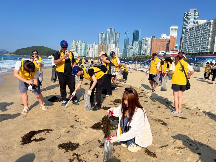지난 9일 해운대 해변에서는 이색적인 광경이 펼쳐졌다. 대만 프로야구 '푸방 가디언스(신베이시 연고)' 소속 치어리더로 많은 팬이 있는 한국인 '이아영'과 그녀를 보러온 팬 140여 명이 한곳에 모여 해변 쓰레기를 줍는 진풍경이 연출됐다.