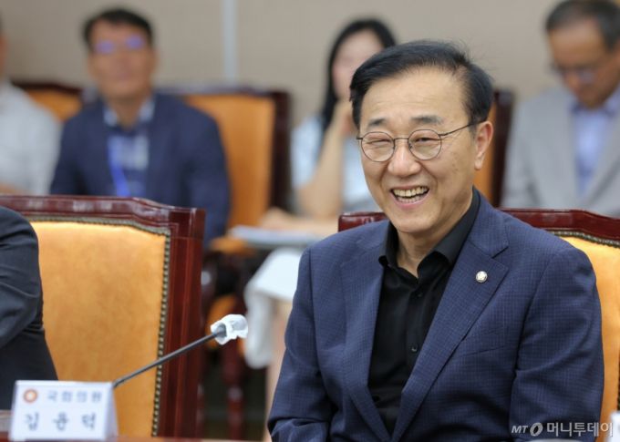 (전주=뉴스1) 유경석 기자 = 김윤덕 더불어민주당 의원(국토교통부 장관 후보자)이 11일 전북 전주시 전북특별자치도청 종합상황실에서 열린 전북 국회의원·도·시군 예산정책협의회에서 참석자들의 축하에 환하게 웃고 있다. 2025.7.11/뉴스1  Copyright (C) 뉴스1. All rights reserved. 무단 전재 및 재배포,  AI학습 이용 금지. /사진=(전주=뉴스1) 유경석 기자