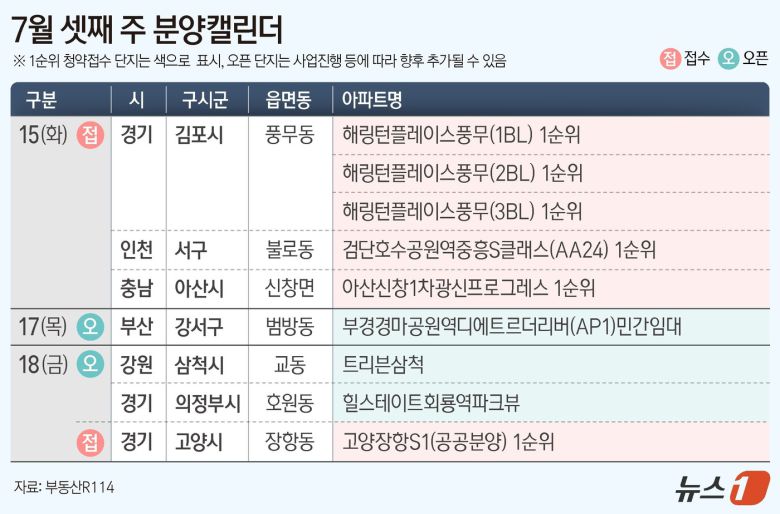 (서울=뉴스1) 오현주 기자 = 다음 주 전국에서 경기 김포시 '해링턴 플레이스 풍무' 등 6개 단지가 분양에 나선다.