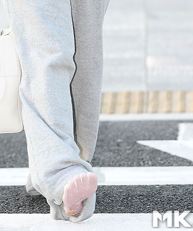 제니는 이를 무심하게 매치했다. 얇은 투명 소재로 발가락 실루엣이 그대로 드러나는 구조, 신발이라기보다 맨발에 가까운 감각. 뒤꿈치의 음영까지 그대로 살아 있었고, 스웨트 팬츠 자락 아래서 조용히 등장했다.