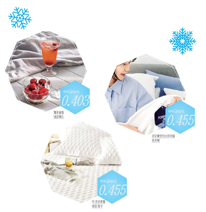 ‘냉감 침구’란 피부에 닿았을 때 차가운 느낌을 주도록 설계된 여름용 이불, 패드, 베개류를 말한다. 엄밀히 따지면 통기성이 좋은 면, 올록볼록한 시어서커, 인견처럼 얇고 가벼운 직물도 포함되지만 최근에는 일명 ‘기능성 원사’를 혼용한 제품을 지칭하는 경우가 많다.
