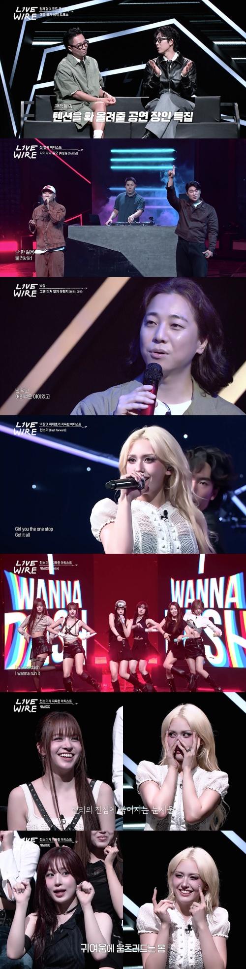 이날 방송에서는 아이돌로 독보적인 활약을 보여주고 있는 전소미와 엔믹스의 만남도 빛나는 순간을 만들었다. 엔믹스의 ‘DASH’ 무대를 본 전소미는 “엔믹스 릴리와 연습생을 함께 했다”며 “얼마 전 대학 행사에서 마주쳤는데, 너무 달라진 릴리를 보고 정신을 못 차렸다. 반갑게 인사해줘서 고맙고, 꼭 한 번 만나고 싶어서 ‘라이브 와이어’를 통해 개인적 욕심을 내봤다”고 엔믹스를 지목한 이유를 털어놨다. 이에 릴리는 “(전)소미 언니의 음악은 많이 듣고 있지만, 어떻게 지내는지 궁금하고 너무 보고 싶었다”며 화답했고, 결국 전소미는 눈시울을 붉혔다. 단순한 음악적 교류를 넘어, 진심 어린 소통과 서로를 향한 애정을 확인할 수 있는 특별한 순간이었다.