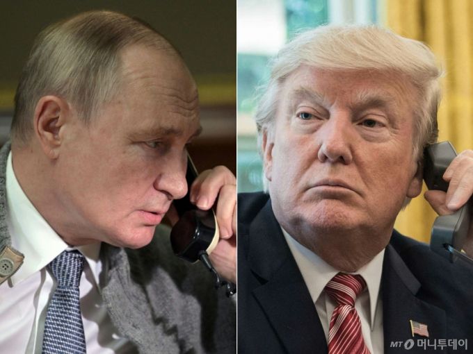 (AFP=뉴스1) 우동명 기자 = 도널드 트럼프 미국 대통령과 블라디미르 푸틴 러시아 대통령이 18일(현지시간) 통화를 갖고 러시아와 우크라이나가 30일간 에너지 인프라 시설에 대한 공격을 중단하는 데 합의한 자료 사진이다. 2025.03.19  ⓒ AFP=뉴스1  Copyright (C) 뉴스1. All rights reserved. 무단 전재 및 재배포,  AI학습 이용 금지. /사진=(AFP=뉴스1) 우동명 기자