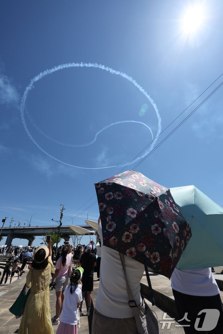 (서울=뉴스1) 신웅수 기자 = 12일 오전 서울 반포한강공원 일대에서 공군 특수비행팀 블랙이글스가 제1회 방위산업의 날 계기 시민 참여 페스티벌을 기념해 에어쇼를 펼치고 있다. 2025.7.12/뉴스1phonalist@news1.krCopyright ⓒ 뉴스1. All rights reserved. 무단 전재 및 재배포, AI학습 이용 금지.이 기사의 카테고리는 언론사의 분류를 따릅니다.0공유하기