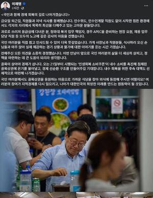 이 대통령은 12일 페이스북에 올린 ‘국민과 함께 경제 회복의 길로 나아가겠습니다’라는 글에서 “여러분의 참여가 지역경제를 다시 일으키고, 나아가 대한민국의 희망찬 미래를 만드는 원동력이 될 것”이라며 이렇게 말했다.
