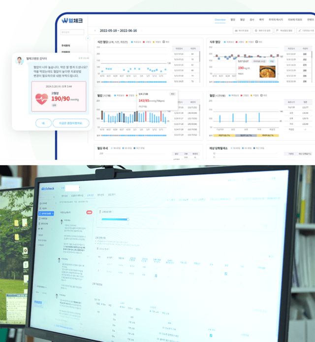 또 '웰체크'에서는 단순 입력값 외에도 최고·최저·평균 수치들을 그래프로 한눈에 확인할 수 있고, 과거 건강검진 기록과도 연동되어 질환의 진행 경과를 파악하는 데도 유용합니다. 이를 통해 의료진은 날짜별, 질환별로 환자 정보를 정리해 모니터링할 수 있으며, 수치가 위험 수위에 도달한 환자는 '주의군'으로 분류되어 더욱 세심하게 관리할 수 있습니다.