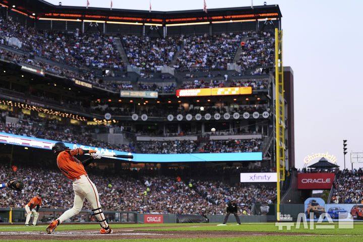 [샌프란시스코=AP/뉴시스] 샌프란시스코 자이언츠의 이정후가 11일(현지 시간) 미 캘리포니아주 샌프란시스코 오라클 파크에서 열린 2025 메이저리그 LA 다저스와의 경기 4회 말 2타점 3루타를 치고 있다. 2025.07.12. |