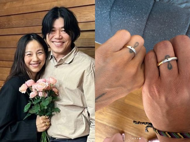이효리와 이상순을 새 커플링을 낀 모습을 사진으로 담았다. 두 사람은 왼손 약지에 똑같은 은색 반지를 착용한 모습으로, 같은 타투도 눈길을 끈다.