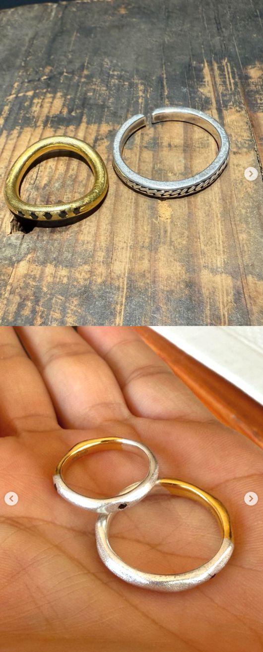 공개된 사진 속에서는 서로 다른 색상, 디자인인 반지 두 개가 놓인 모습. 한 반지는 휘어있고, 한 반지는 일부가 잘린 모습이다.