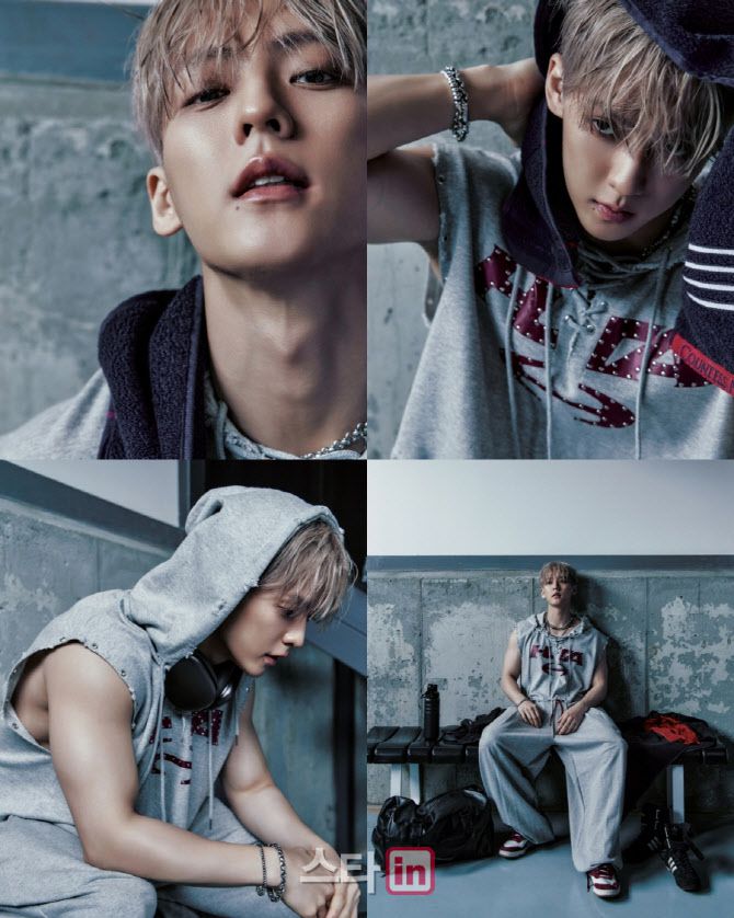 먼저 공개한 첫 번째 포토에는 회색 트레이닝복을 입고 벤치에 앉아 땀을 닦는 이민혁의 모습이 담겼다. 이민혁의 깊은 눈빛과 민소매 의상을 통해 드러난 탄탄한 팔 근육, 생동감 넘치는 포즈를 향한 팬들의 뜨거운 반응이 이어졌다.