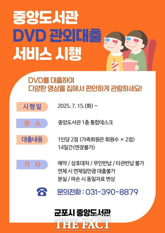 [더팩트ㅣ군포=이승호 기자] 경기 군포시 중앙도서관은 15일부터 DVD 관외대출 서비스를 한다고 12일 밝혔다.