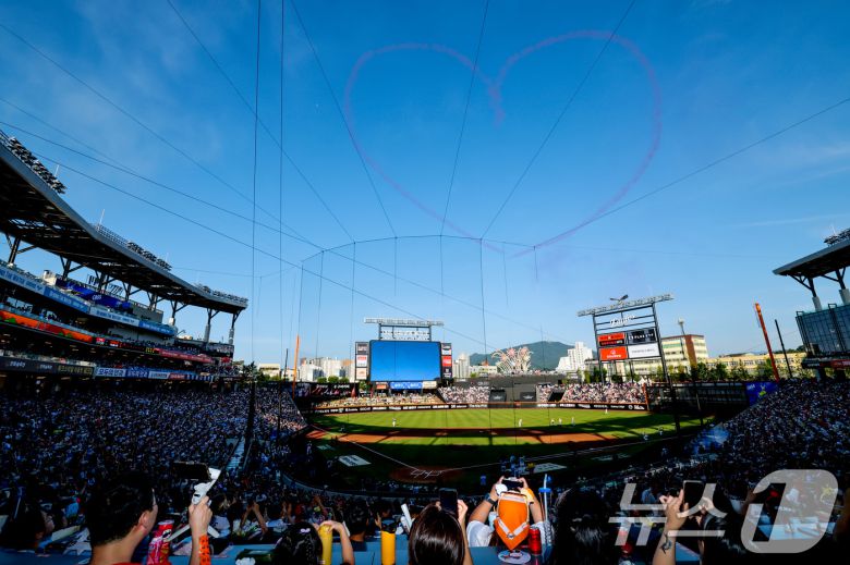 (대전=뉴스1) 김기태 기자 = 12일 오후 대전 한화생명볼파크에서 열린 '2025 신한 SOL Bank KBO 올스타전'에서 대한민국 공군 특수비행팀 블랙이글스가 축하공연을 선보이고 있다. 2025.7.12/뉴스1presskt@news1.krCopyright ⓒ 뉴스1. All rights reserved. 무단 전재 및 재배포, AI학습 이용 금지.이 기사의 카테고리는 언론사의 분류를 따릅니다.0공유하기